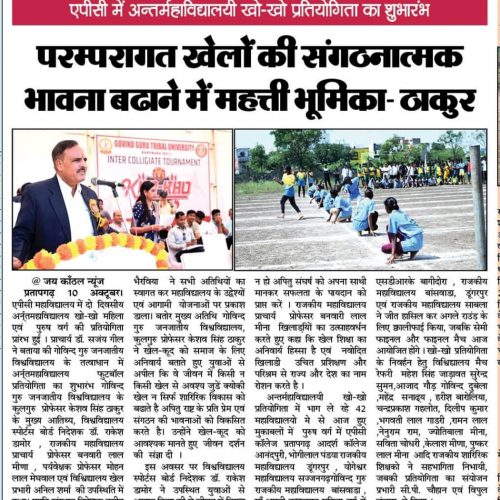 एपीसी में अन्तर्महाविद्यालयी खो-खो प्रतियोगिता का शुभारंभ परम्परागत खेलों की संगठनात्मक भावना बढाने में महत्ती भूमिका-ठाकुर
